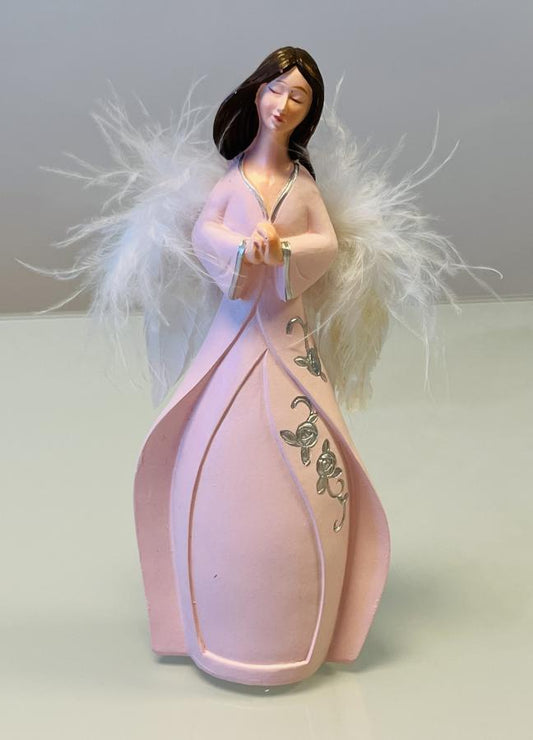 Anjel s ružovými šatami s krídlami z peria, 16cm